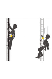 - LADDER CLIMB ventral attachment point adapts to all uses (progression, positioning and occasional suspension), offering the possibility of connecting a lanyard, a descender or a fall-arrest trolley. For vertical progression with a rail or cable-based fall protection system, the LADDER CLIMB attachment point allows for ventral attachment of the trolley, which distributes the load on the waistbelt and thus ensures optimal comfort. In case of a fall, this attachment point automatically moves upward to a sternal position to ensure a vertical post-fall body position