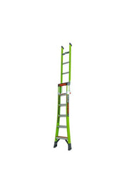 • Patent-pending non-conductive Hi-Viz green fiberglass makes the ladder more noticeable