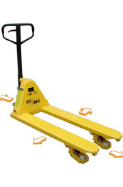 The 4-Way Hand Pallet Truck is designed to traverse at a 90° angle. This means that the pallet truck can move from side to side as well as forwards and backwards.