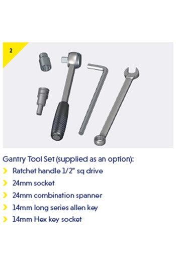 Porta-Gantry Tool Kit Comprises of a Ratchet and socket, combination spanner and long reach allen key This kit will help assemble the Reid range ...