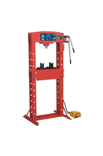 Sealey YK309FAH 30tonne Floor Type Air/Hydraulic Press with Foot Pedal Heavy-duty steel frame construction with side mounted air motor powering h...